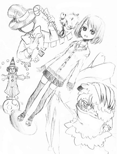 主に鉛筆で書いたのを取り込んだもの、カラーもちょびっとだけ。